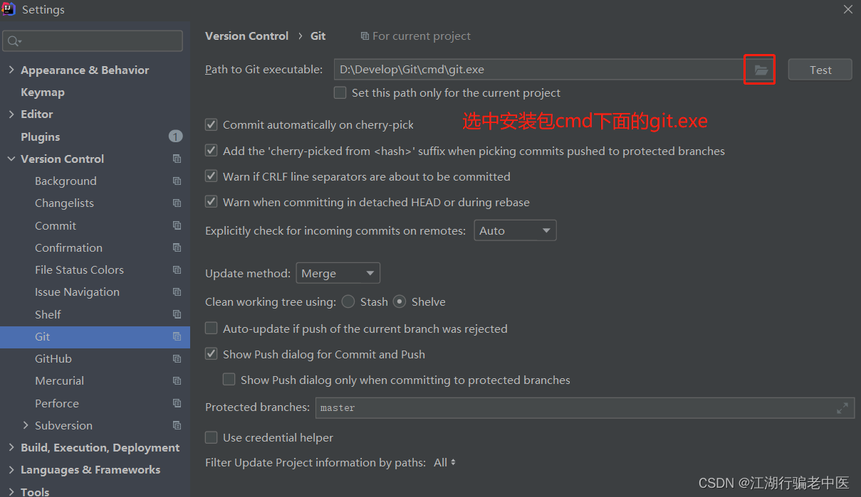 IDEA使用Git以及卡顿的相关问题及解决IDEA使用Git以及卡顿的相关问题及解决一、 安装idea和git(百度) 二、 Idea配置git File → settings → Version Control → Git 版权声明:本文为liming1016原创文章,遵循CC 4.0 BY-SA版权协议,转载请附上原文出处链接和本声明。原文链接:https://blog.csdn.net/liming1016/article/details/126259321