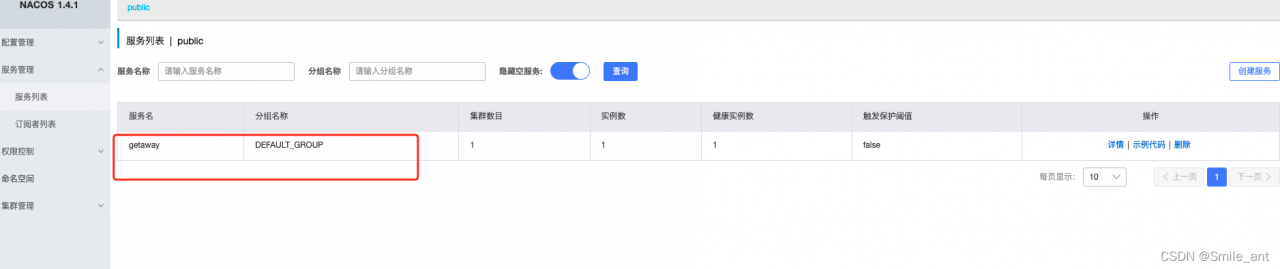 password: nacos #默认密码3、启动项目,此刻nacos控制台出现项目名称。则配置成功