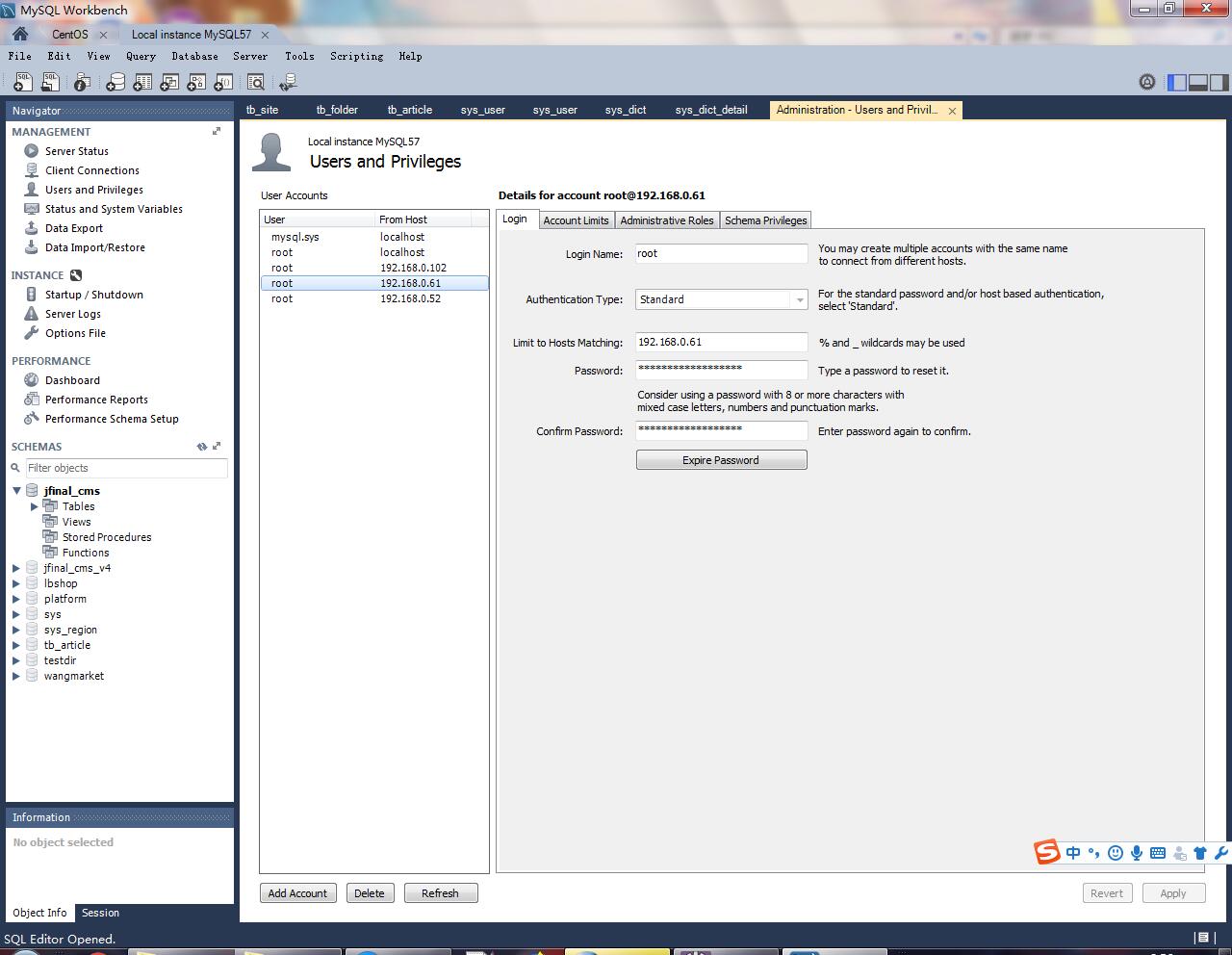 MySQL Workbench给其他IP用户分配权限2019独角兽企业重金招聘Python工程师标准>>>转载于:https://my.oschina.net/ZhenyuanLiu/blog/1801019