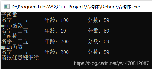 // cout << "名字" << st2.name << "年龄" << st2.age << "分数" << st2.score<< endl;