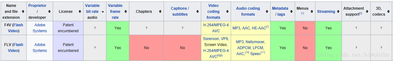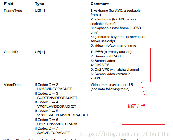 FLV,F4V,MP4广泛应用于各主流直播和点播平台,能够非常方便的流媒体和存储处理。本篇记录一下FLV文件的格式学习,FLV相对MP4格式比较简单。主要由文件头+三种类型的TAG组成。FLV支持的音视频编解码方式如下图
