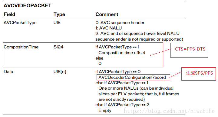 - CompositionTime 表示当前帧PTS对DTS的偏移值,单位毫秒即CTS=PTS-DTS。CTS永远>0,因为一帧显示时间总是在解码时间之后。如