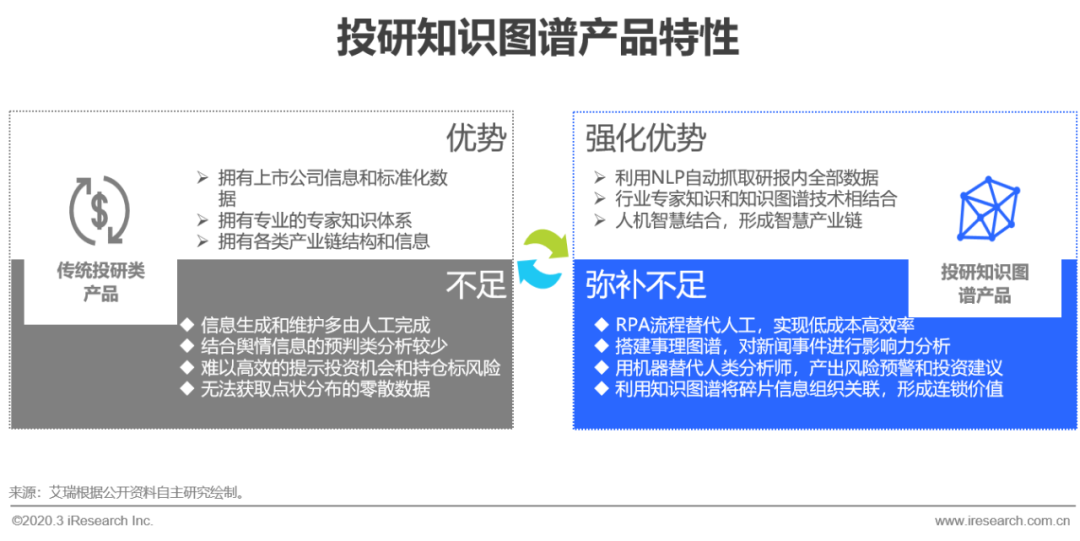 对一级市场或二级市场的投资研究,一直是泛金融领域重要的课题,上市公司或一些重要的标的公司在公开网络中披露了众多如财务数据、定期公告、公司研报等有价值的信息,为投资者行为提供了充分的参考依据。传统投研工作需要分析师通过各种渠道去搜集和判别信息,凭借个人经验对零散的数据进行组织建模,以报告的形式产出趋势观点和数据分析,大部分的物料和时间成本都花费在信息和数据的搜集上,而且成果可控性不高,纵使头部金融数据机构提供了相应的软件产品,但数据的颗粒度和产业链关联性仍难以满足多元需求,这成为了该行业长久存在的痛点。投研知识图谱以公司信息、产业链关联为切入点,利用NLP技术自动抓取关键信息,搭建投研领域知识图谱,将各个行业的发展变化抽象导入数字层面,为知识查询和应用开发提供实现基础。据统计,券商研报中80%的数据指标在传统软件产品中无法查询到,分析师在进入一个新领域时要耗费一周左右的时间搜集类似数据,而利用投研知识图谱可以将其必要劳动时间缩短到一分钟,大幅提高投研效率。除静态领域图谱外,还可以利用时间序列搭建对网络报道、新闻事件进行抓取的事理图谱,两相结合,从行业固有逻辑和实时信息双管齐下,推导事情的发展脉络和趋势走向,为投研机构和投资者清晰的梳理关联脉络,为后续判断投资机会和持仓股票风险等研判类应用提供数据支撑。