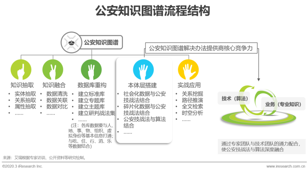 公安大数据是全面助推公安工作质量变革、效率变革、动力变革的重要力量,受到党中央和公安部的高度重视,而作为大数据和人工智能双重技术的应用表现,知识图谱通过数据分析、文本语义分析等,抽取出人、物、地、组织机构、服务标识等实体,并根据实体的属性联系、空间联系、语义联系、特征联系等建立相互关联,构建一张具有公安特性的多维多层的实体与实体、实体与事件的关系网络,在解决公安大数据发展中面临的数据缺乏关联性等问题时起到了重要作用。建设公安知识图谱仍然遵循知识图谱搭建逻辑,其中知识抽取、本体层建设和实战应用开发,需要将公安部门多年积累的实战经验与技术算法相互转换,重点考验公安知识图谱解决办法提供商对公安业务的理解能力和专业积累,是该行业竞争中重要的壁垒。