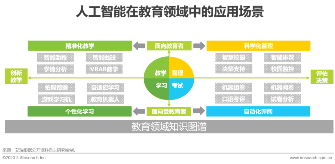 当前的教育场景可以划分为教、管、学、考,主要围绕教育者和受教育者进行授课、答疑、阅卷和学习、练习、考试等活动,本质上是通过系统化的知识传授与强化练习,使受教育者掌握知识点的过程。传统教育模式以教师集中授课为主要方式,存在着特级教师资源少、优质教学资源分配不佳、教学内容和教学节奏制式化,以及作业练习布置缺乏个性化等问题。在教育信息化和线上教育发展普及之后,AI+教育的概念随之产生,人工智能公司和教育机构希望通过利用AI技术部分解决上述痛点,以达到对教育参与者减负增效的目的,但因为教育领域参与个体众多,采集到的数据驳杂且零碎,难以直接有效应用,所以目前AI技术更多应用在如拍照搜题、口语评测、课堂监控等外围需求的工具上面,并未能有效深入到教学场景中。而类似课题推送等应用更多是将教学资源再分配,重视知识的点状强化练习,却不深究知识的掌握程度,以至实际使用者反馈平平。人工智能技术真正产生生产价值,一定要建立在充分且必要的数据基础上,搭建贯穿教材知识体系、教学资源管理和受教育者学习轨迹的知识图谱,将教与学的全过程进行可视化展现,使静态知识点数据与动态教学活动(如考试、作业等)数据产生关联,为算法应用提供支撑环境,是AI+教育能落地到产业核心的关键前提。