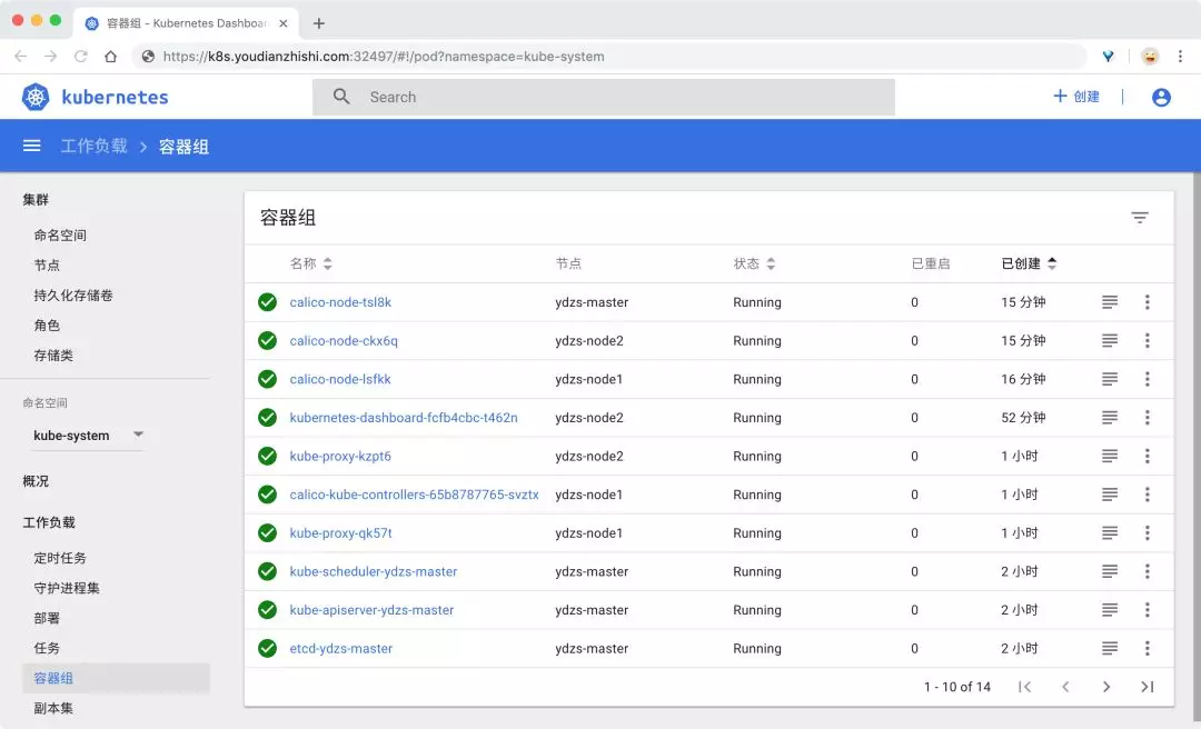 $ kubectl get pods -n kube-systemNAME READY STATUS RESTARTS AGEcalico-kube-controllers-65b8787765-svztx 1/1 Running 0 82scalico-node-gmng9 1/1 Running 0 82scalico-node-t695p 1/1 Running 0 82scoredns-cf8fb6d7f-jsq5h 1/1 Running 0 42mcoredns-cf8fb6d7f-vxz4c 1/1 Running 0 42metcd-ydzs-master 1/1 Running 0 41mkube-apiserver-ydzs-master 1/1 Running 0 41mkube-controller-manager-ydzs-master 1/1 Running 0 41mkube-proxy-4z4vf 1/1 Running 0 42mkube-proxy-qk57t 1/1 Running 0 5m11skube-scheduler-ydzs-master 1/1 Running 0 41m