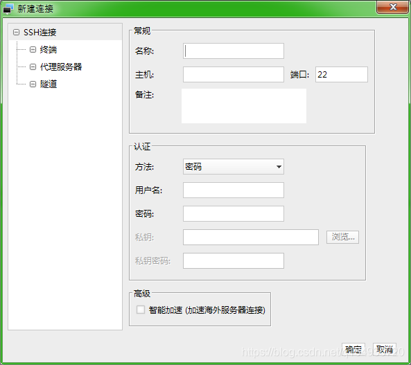 安装后启动,点击sessionèSSH,就看到我们常见的IP、用户名输入框了,点OK。