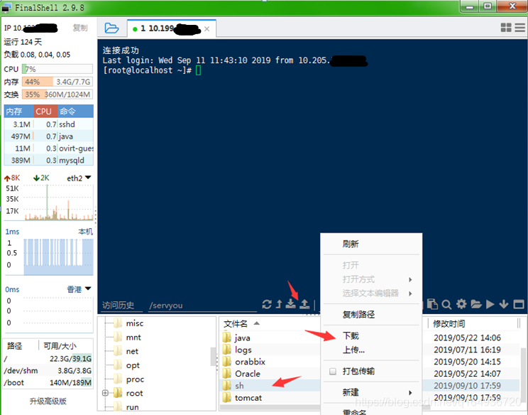 左侧文件夹列表支持文件拖拽上传,鼠标右键下载文件;但上传/下载文件夹时会把子文件、子文件夹上传/下载,而不包括文件夹本身。