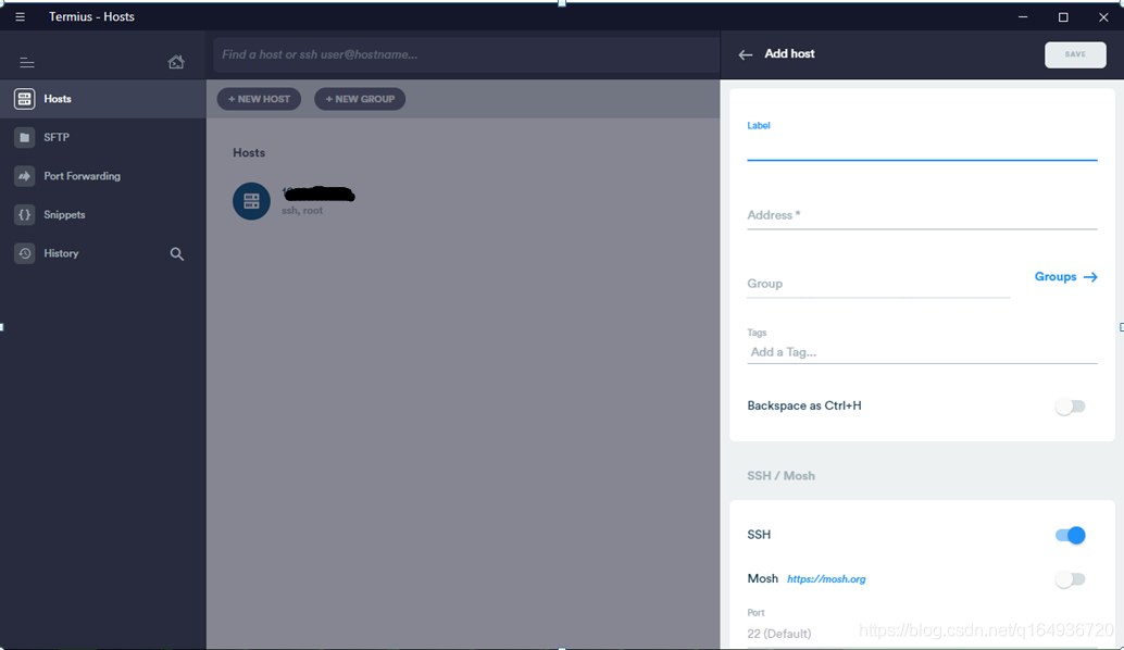 登录成功后在Hosts新建主机,填好信息后SAVE,双击新建的主机即可登录该主机。