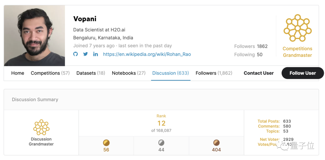 来介绍一下作者本作——Vopani,真名叫做Rohan Rao,来自印度,是H2O.ai的数据科学家,毕业于印度孟买理工学院应用统计学专业。