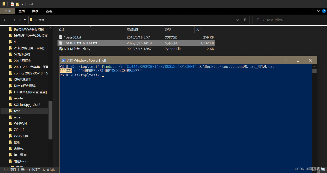 有一个为“111222”的明文密码,被加密为NTLM值。