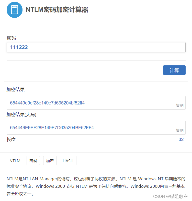 NTLM密码加密计算器:NTLM密码加密计算器 - 计算专家