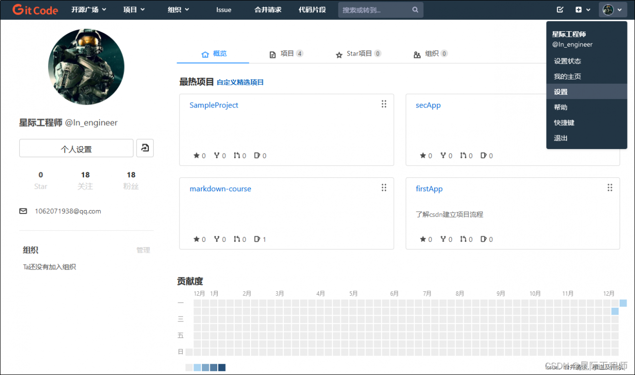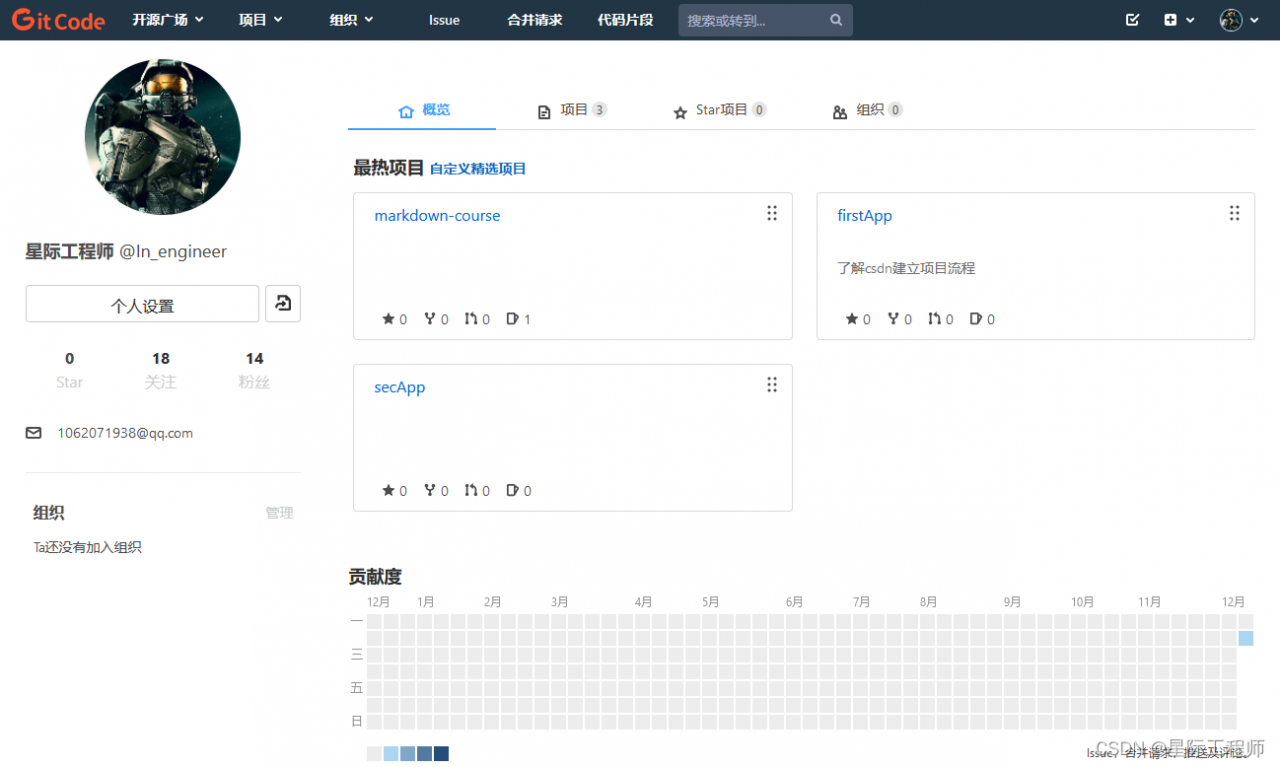 然后去平台查看提交记录,确认提交成功。由于之前配置的是我在CODE.CHINA平台的邮箱,所以可以看到贡献者就是我自己。