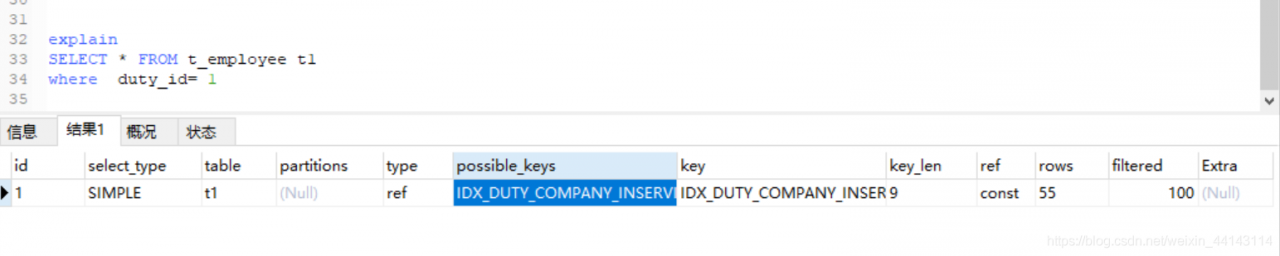 possible_keys:表示查询时,可能使用的索引