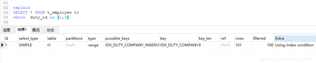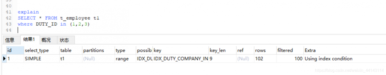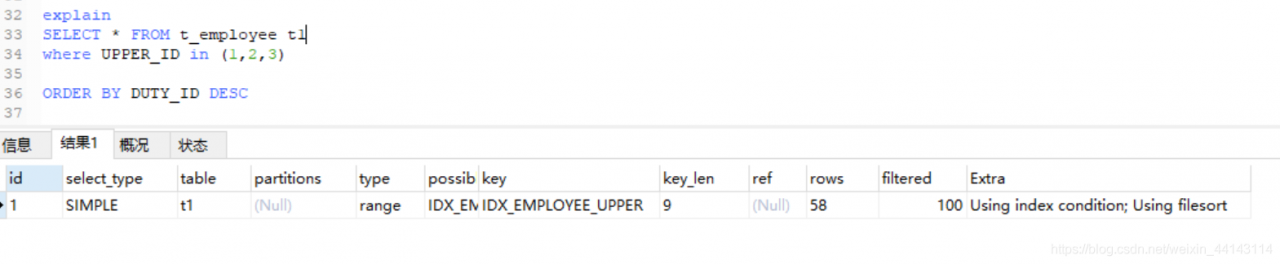 如下图中,UPPER_ID是单索引,DUTY_ID是组合索引的最左列。