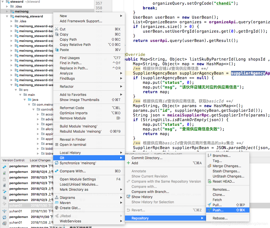 a. 右击项目依次选中:Git->Repository->Reset HEAD