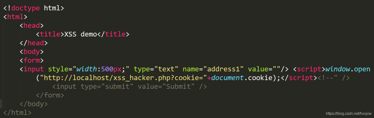 明显看出,这个html回去执行一个脚本,这个脚本功能是把用户的cookie发送到黑客的接收网站。