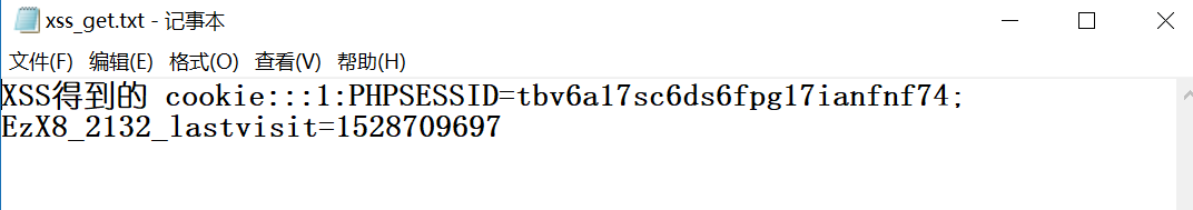 这样,我们xss_hacker.php脚本执行之后,我们本地就会生成一个xss_get.txt.