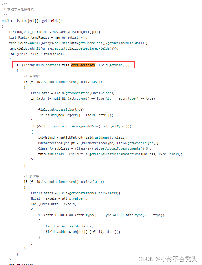 }接着在原来的getFields()方法里加上圈起来的条件