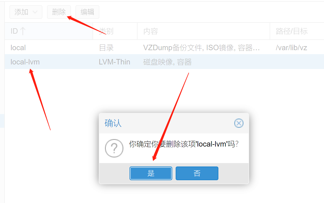 删除local-lvm存储空间
