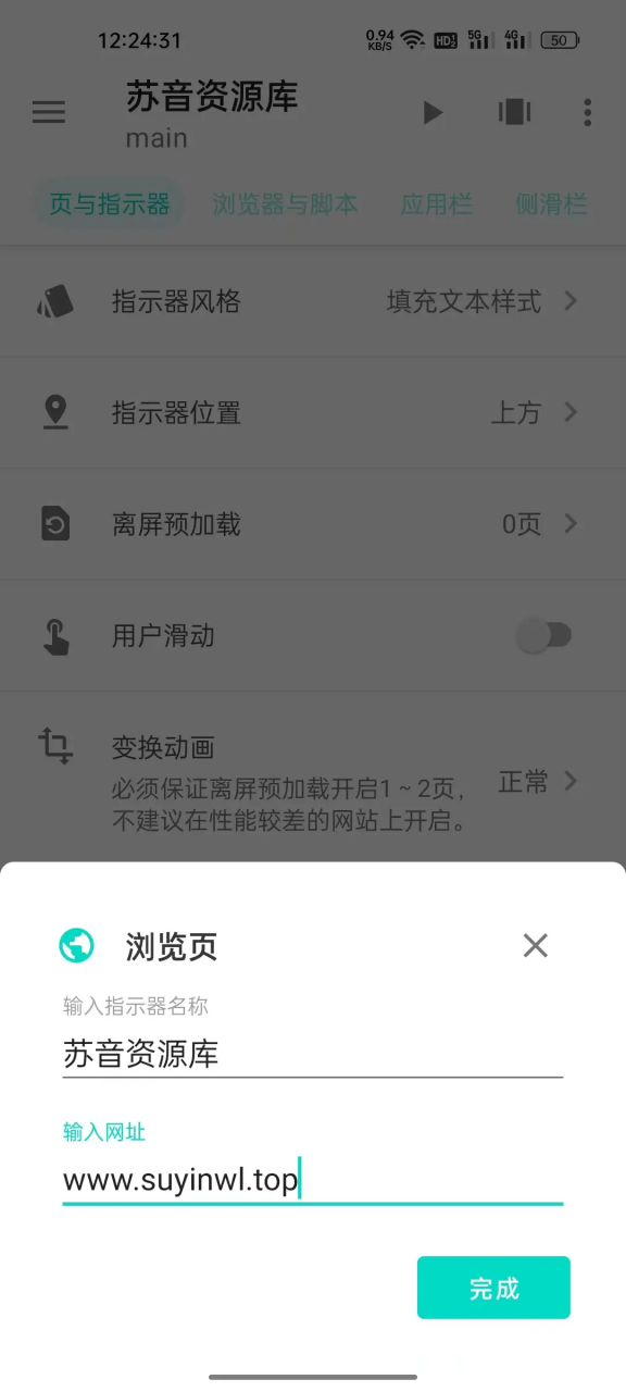 3.打开生成的应用包,点进去,找到浏览页,输入网站名称及网站地址,网站地址要加http