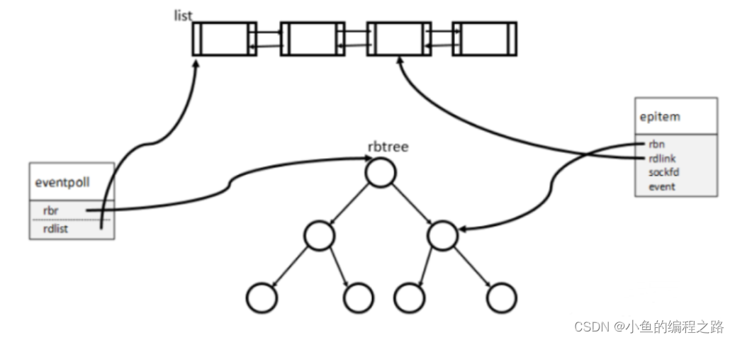 对于每个被监听的文件描述字,都有一个对应的 epitem 与之对应,epitem 作为红黑树中的节点就保存在红黑树中。