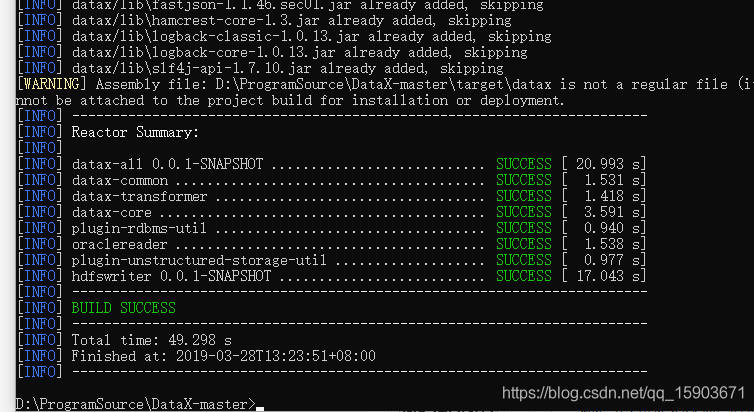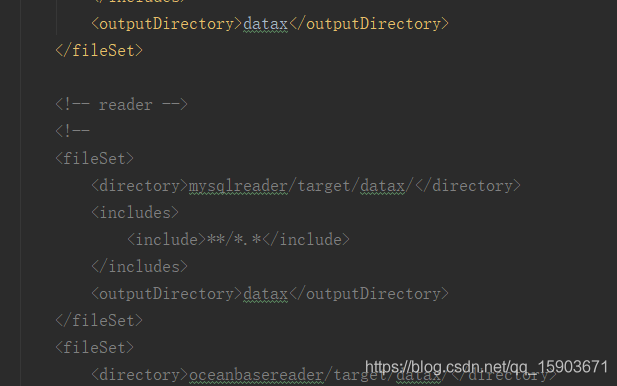 package.xml里fileSet标签中又看到了众多的插件,不要的干掉!!!pom.xml文件里注释掉多余插件是让maven打包前减少不必要的编译检查源码、检查并下载依赖包等操作,而package.xml里注释掉多余的插件是不再拷贝各插件中的jar文件、配置文件等到打包的目标路径。这样,生成的dataX包就不会像原来那么大了。
