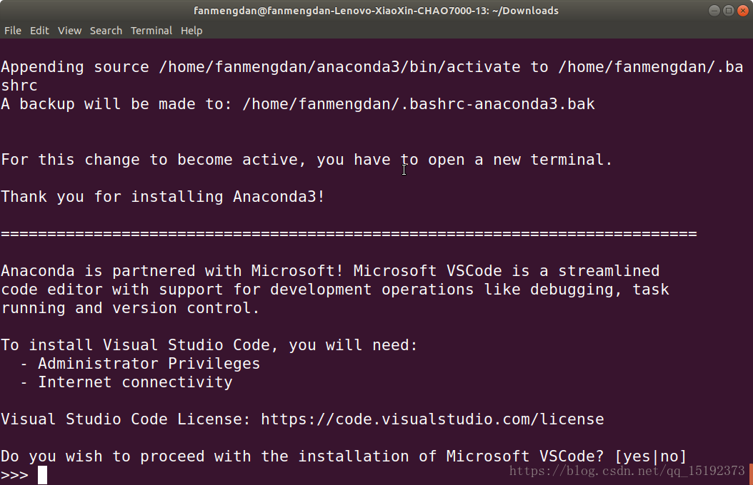 source ~/.bashrc修改终端的默认 python 为 anaconda,至此全部完成。