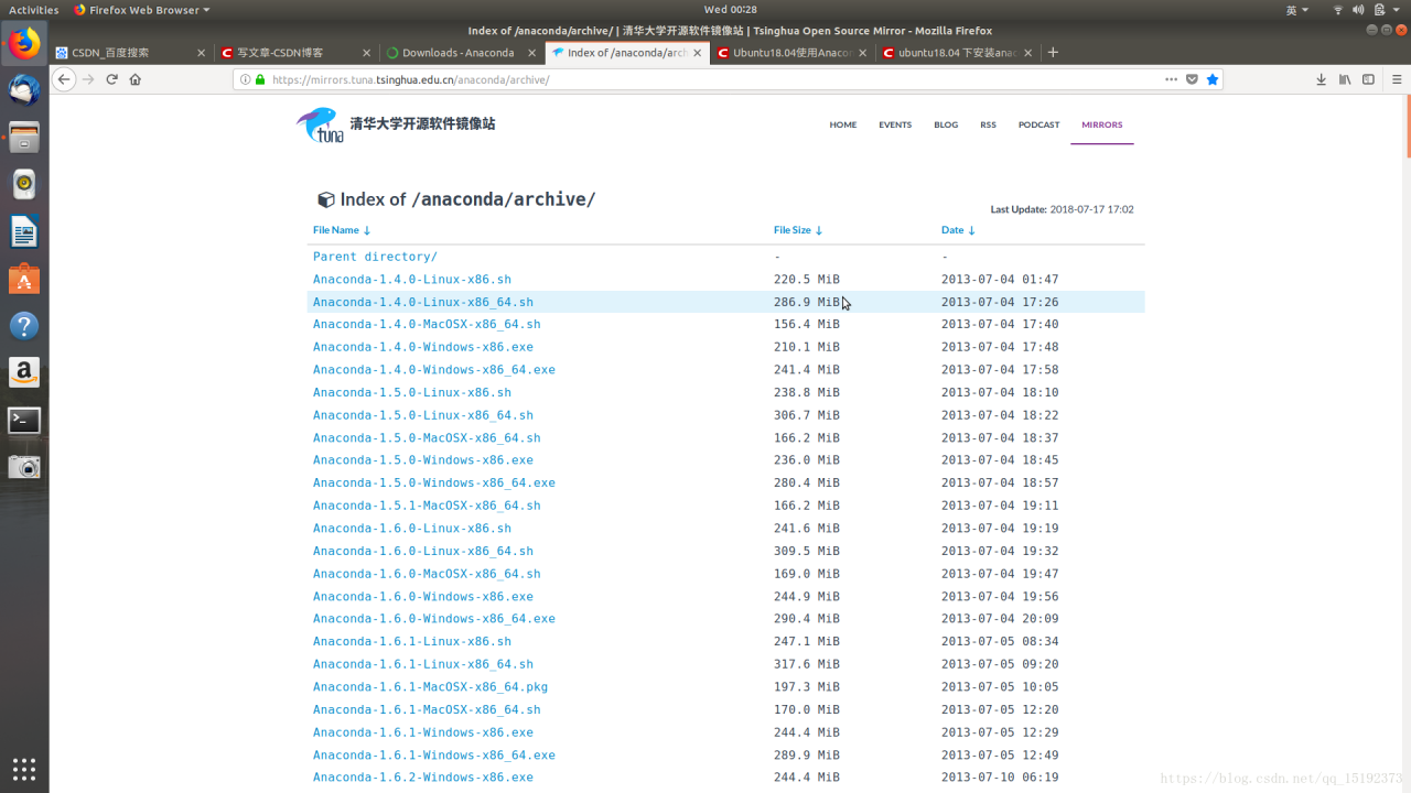 下载 Anaconda3-5.2.0-Linux-x86_64.sh (Ubuntu18.04的对应的Anaconda版本):