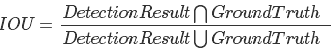 IoU这一值,可以理解为系统预测出来的框与原来图片中标记的框的重合程度。 计算方法即检测结果Detection Result与 Ground Truth 的交集比上它们的并集,即为检测的准确率。
