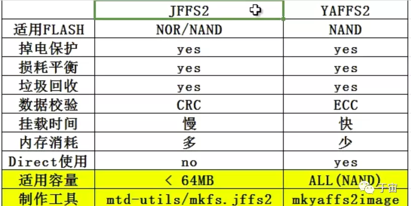 yaffs/yaffs2是另一种日志闪存文件系统,主要是为nand型flash设计的文件系统,为了应对flash容量的快速增长。