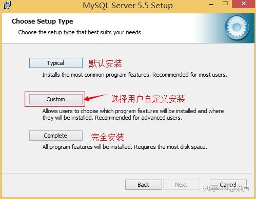 2、选择安装类型,有“Typical(默认)”、“Complete(完全)”、“Custom(用户自定义)”三个选项,选择“Custom”,按“next”键继续。
