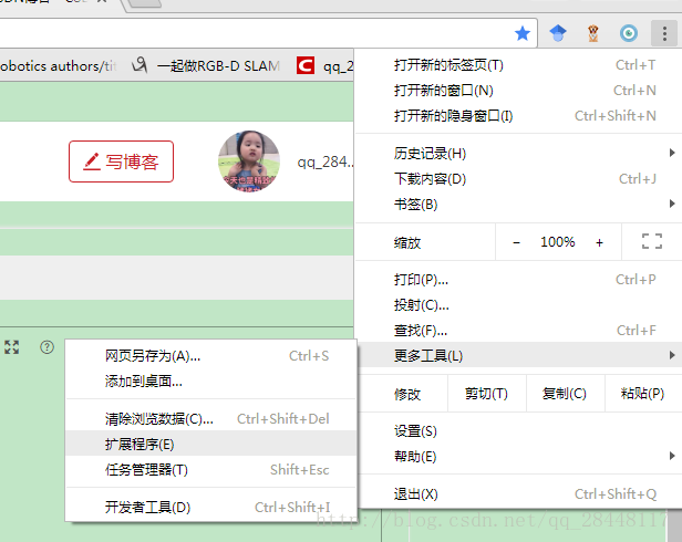 一:如下图所示,选择三个点--更多工具---扩展程序