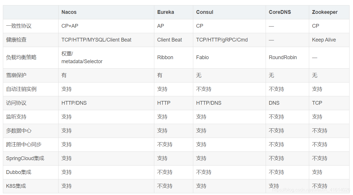微服务注册中心Eureka、zooKeeper、consul、Nacos对比