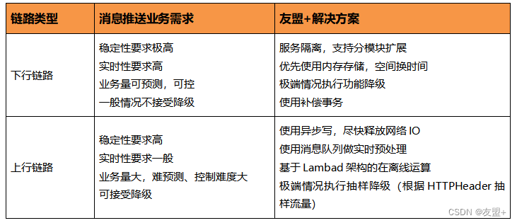 消息推送根据业务场景分为上行链路和下行链路,这两种链路在业务需求上存在明显的差异。