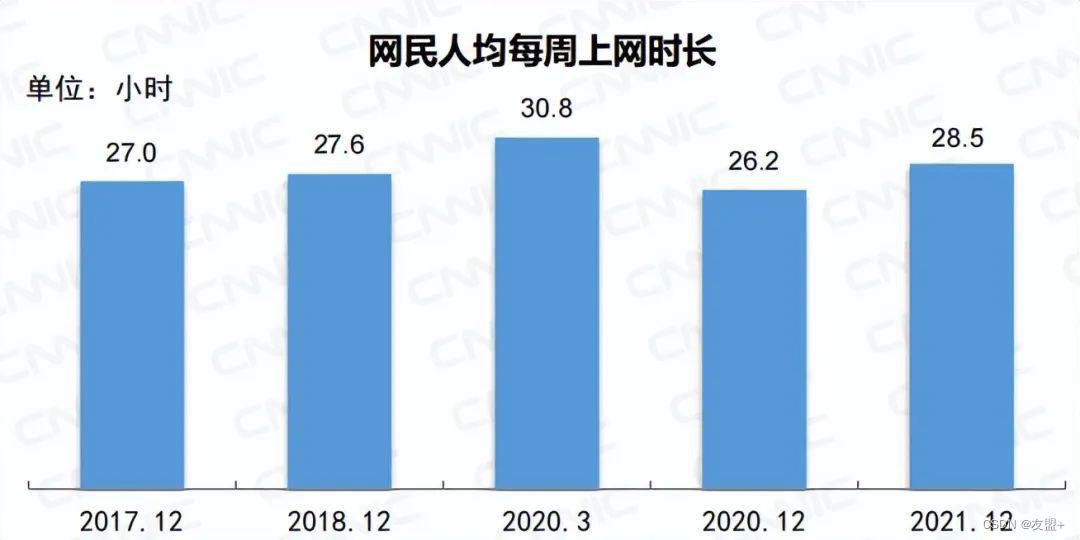 与此同时,用户的上网时长也见顶了。截至2021年12月,我国网民的人均每周上网时长为28.5个小时,较2020年12月只提升2.3个小时。可以预见,移动应用对用户的争夺将日趋激烈。