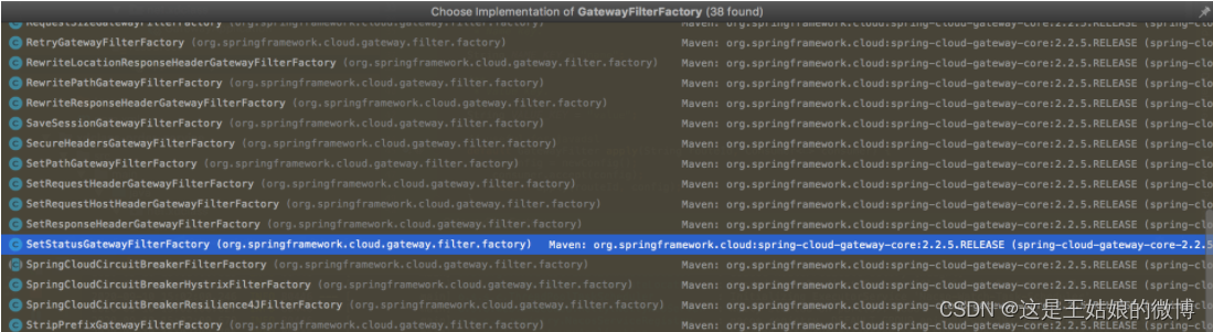 内置很多局部过滤器,顶级接口 GatewayFilterFactory