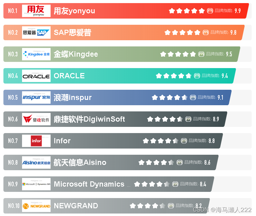ERP系统十大品牌数据由CNPP品牌榜中榜大数据「研究院」和CN10排排榜技术「研究院」通过资料收集整理,并基于大数据统计及人为根据市场和参数条件变化的分析研究专业测评而得出。