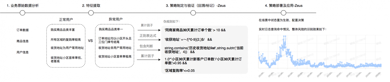 策略产品在日常工作中,通过对业务分析发现风险、挖掘风险特征并应用在策略中。通过Zeus实现策略的部署和应用,大大降低了业务风险,提升风险防控效率。例如:在某业务地推场景中发现B、C端联合刷单风险,以返利、送赠品收到诱骗下单。