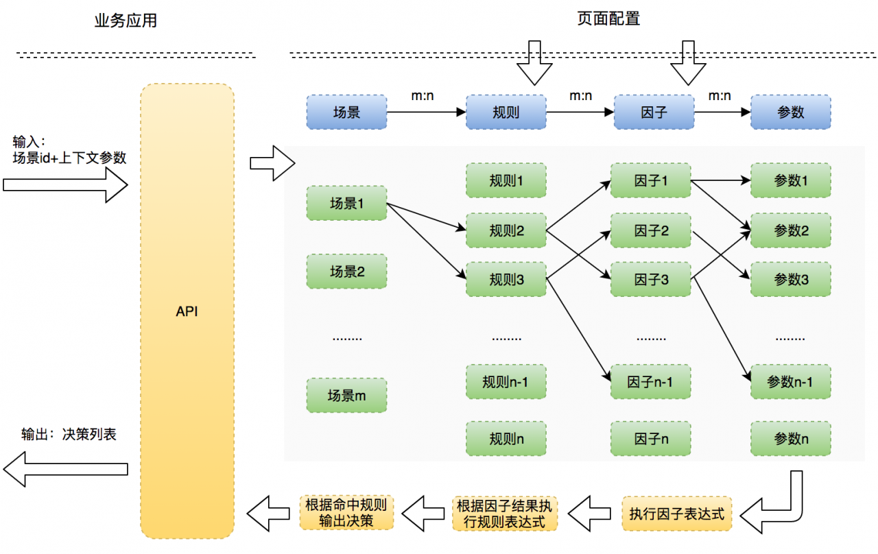 执行层:通过场景获得一堆规则集合,规则执行完成后将其结果和对应的决策返回。