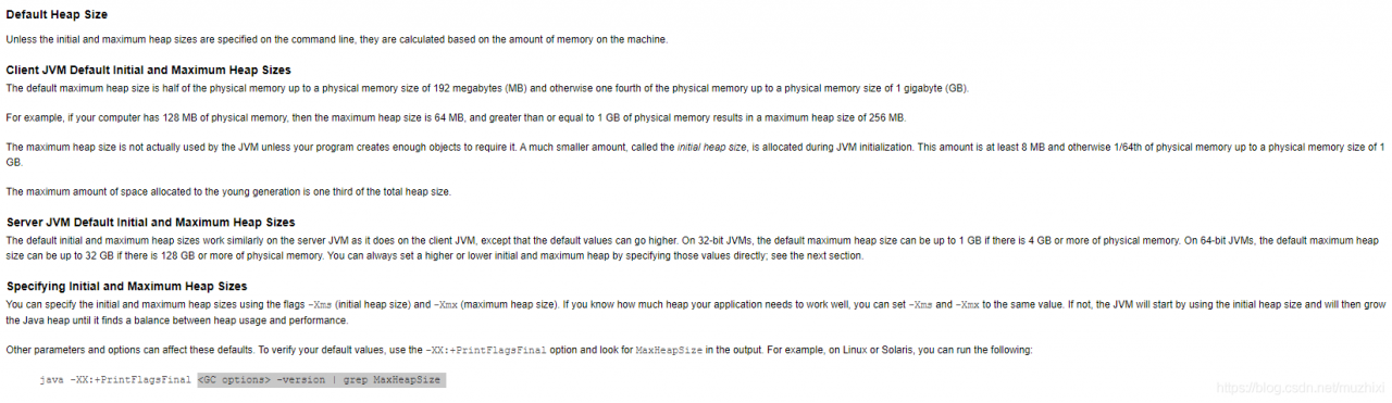 java -XX:+PrintFlagsFinal -version | grep HeapSize或者使用java代码:
