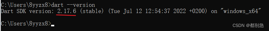 3.桌面左下角输入cmd回车,输入 dart --version 回车查看版本号,出现版本号证明安装完成。