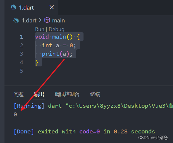 创建一个.dart结尾的文件,打点代码(别忘记分号;)
