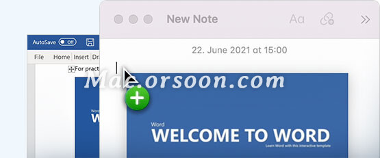 在 Mac 和 Windows 应用程序之间拖放文本或图形,快速而方便。在 macOS Monterey 上,将 Windows 应用中的任何内容拖放到 Quick Note,跟从 macOS 应用拖放内容的操作一样简单。