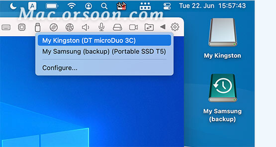 对 USB 3.1 设备的支持有利于连接更多超高速存储设备,包括 Samsung T7 Touch、Pro Elite portable SSD 等。Parallels Desktop 菜单使用易于辨别的 USB 设备名称,因此用户能够更容易识别和选择所需的 USB 设备来连接到 Windows。