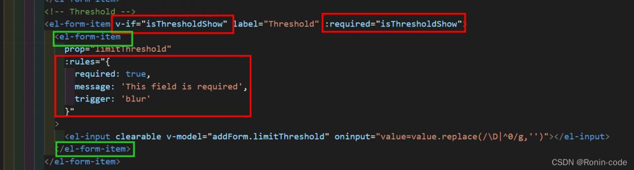 element表单 去掉表单某一项校验使用场景:el-form-item 标签中存在v-if 时,需要套个el-form-item 直接写在第一层会有问题,记录一下版权声明:本文为qq_36396822原创文章,遵循CC 4.0 BY-SA版权协议,转载请附上原文出处链接和本声明。原文链接:https://blog.csdn.net/qq_36396822/article/details/123570719