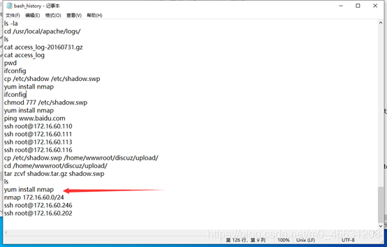 解析:bash_history用于储存用户的操作,使用了nmap 172.16.60.0/24扫描内网