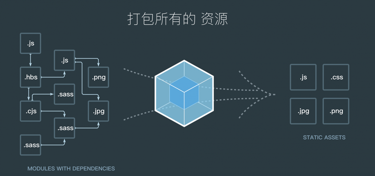 而webpack就是将你从npm中安装的包 打包成更小的浏览器可读的静态资源,这里需要注意的是,webpack只是一个前端的打包工具,打包的是静态资源,和后台没有关系,虽然webpack依赖于node环境