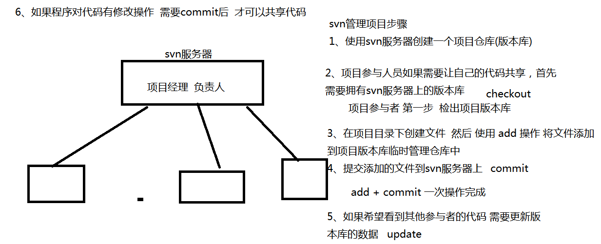 SVN只有一个单一的集中管理的服务器,保存所有文件的修订版本,而协同工作的人们都通过客户端连到这台服务器,取出最新的文件或者提交更新。