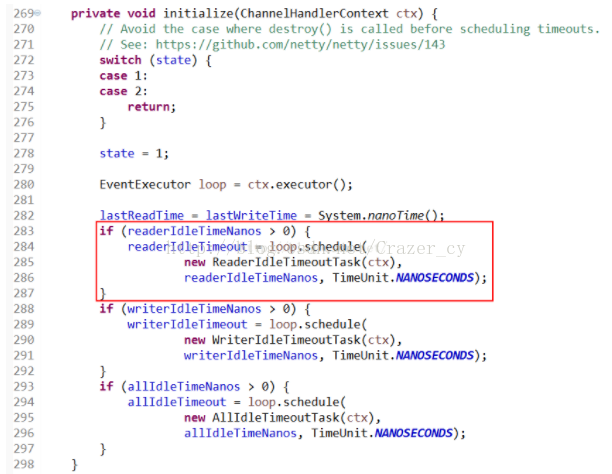 这里有个initialize的方法,这是IdleStateHandler的精髓,接着探究: